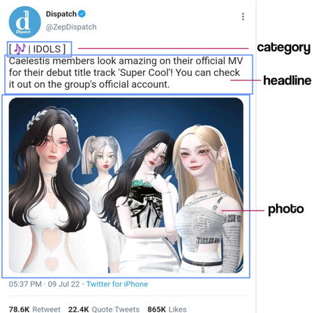 There are 3 categories of posts: media, idols and applications.- Idols news: the most common ones. Any information regarding any idol or group goes under this category. If you want to have a post about your group's comeback date, debut date, official members reveal or share information about any member/idol, this is where you will have to put it.